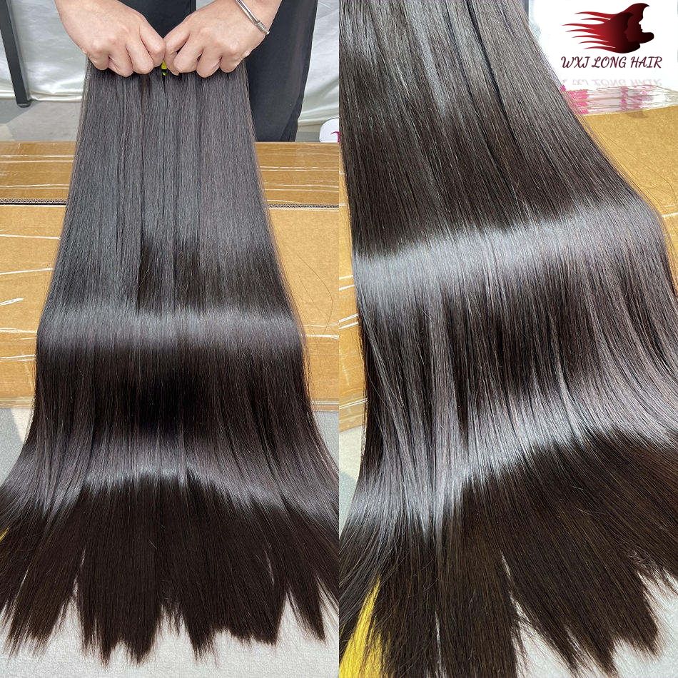 Venta al por mayor de cabello Remy con cutícula alineada, 100% cabello humano virgen brasileño liso en paquetes para la venta