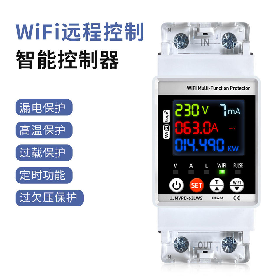 Protector Multifunción WIFI 63A, Interruptor de Circuito Inteligente Tuya con Protección Contra Fugas, Sobrecarga y Sobretensión para Uso Doméstico