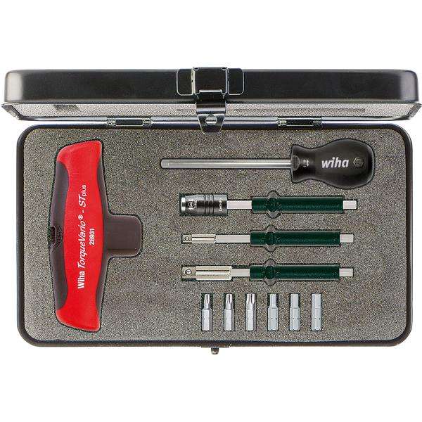 WIHA-Destornillador dinamométrico con juego de mango en T TorqueVario®-S T con límite de par variable ajustable con caja incluida mixta de 12 bits