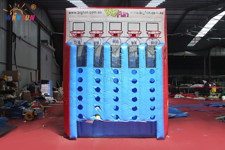 Balón de Baloncesto Inflable Comercial WINSUN, Cuatro Balones de Baloncesto Consecutivos, Juego Inflable Deportivo