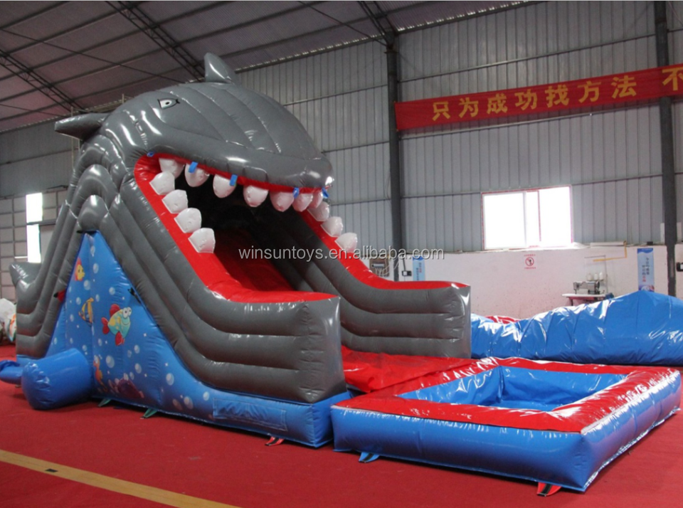 Tobogán de agua inflable de tiburón gigante WINSUN a la venta tobogán de agua animal inflable para adultos y niños
