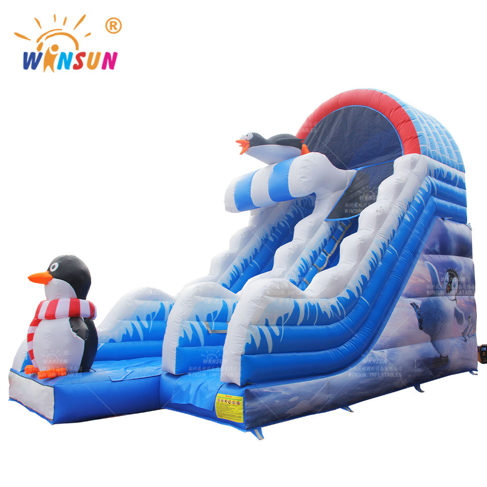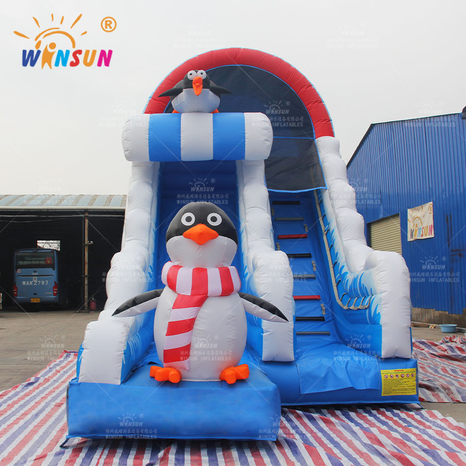 Tobogán Acuático Inflable Popular de Pingüino WINSUN con Doble Línea para Niños, Toboganes Acuáticos Inflables de PVC Baratos