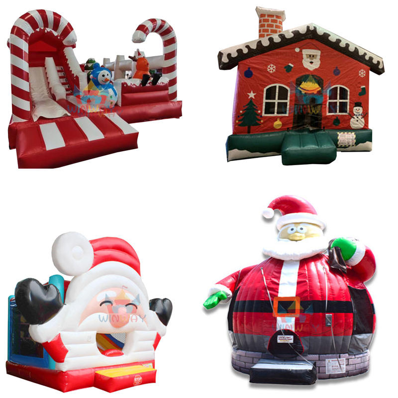 WINWAYTOYS ¡Tobogán de castillo inflable de Navidad de PVC con muñeco de nieve y árbol, alquiler de casa de rebote de vacaciones para diversión festiva!