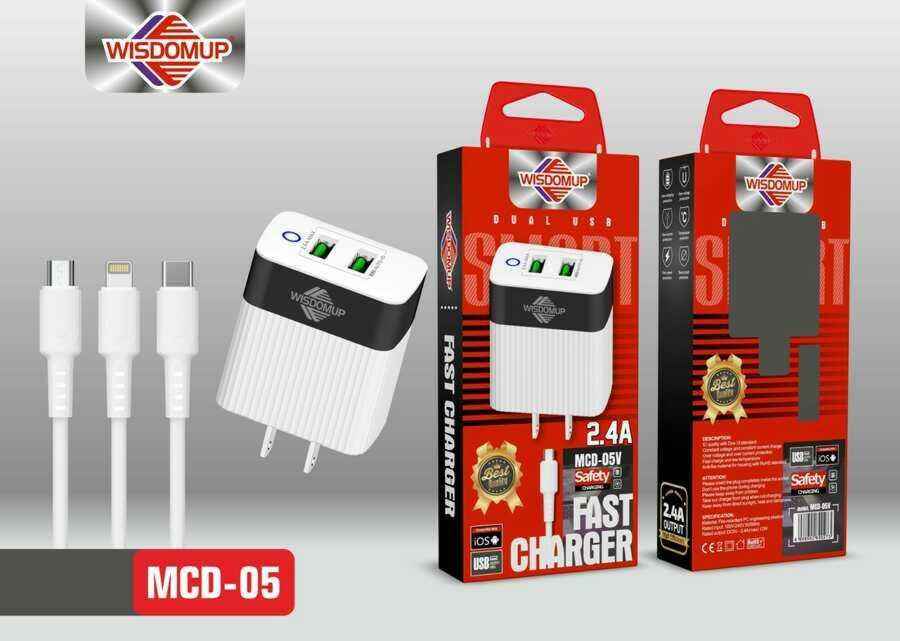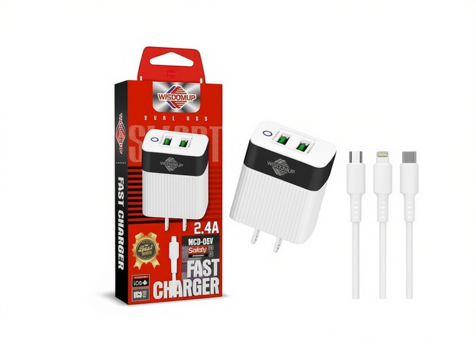 Cargador rápido USB de doble puerto WISDOMUP 2.4A con cable para tableta MCD-05V