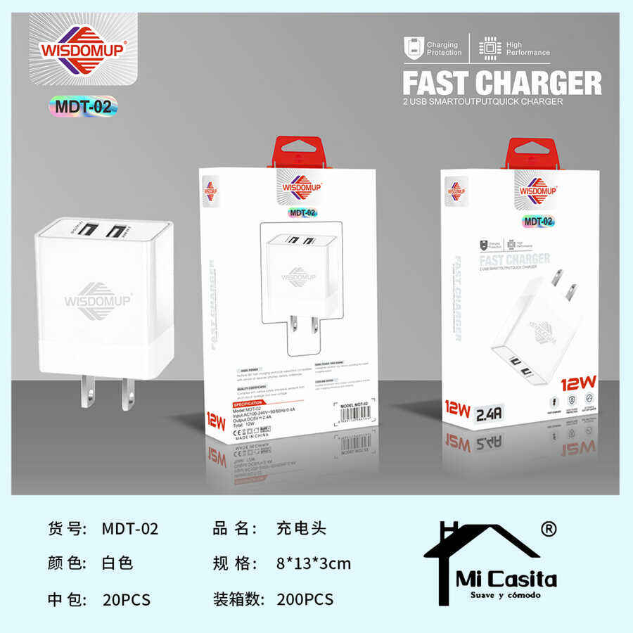 Cargador USB dual WISDOMUP de 12W 2.4A con carga rápida para tableta MDT-02