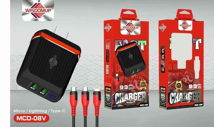 Cargador Rápido WISDOMUP MCO-03V 18W con 2 Puertos USB, Adaptador de Carga Universal