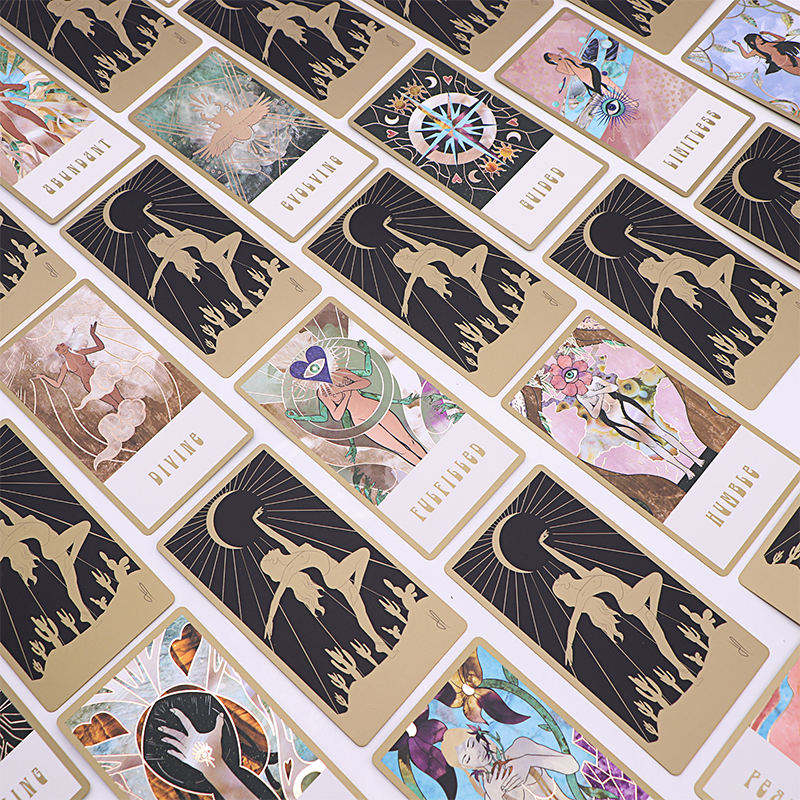 Cartas de Tarot Personalizadas WJPC con Bordes Plateados, Cartas de Oráculo Láser al por Mayor, Impresión Divertida con Logotipo, Baraja de Afirmación, Cartas de Tarot Holográficas