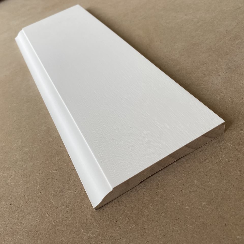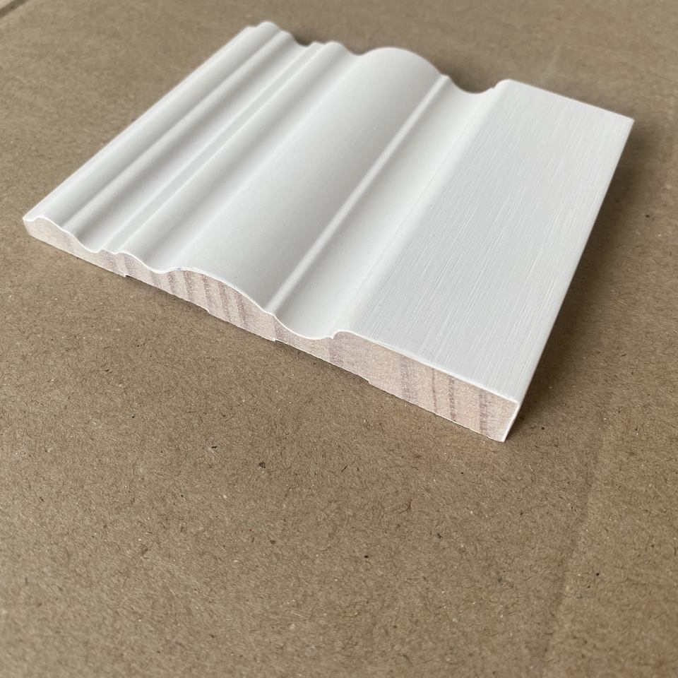 Nombre:Moldura de zócalo de madera con juntas de dedo, imprimada en blanco WM430