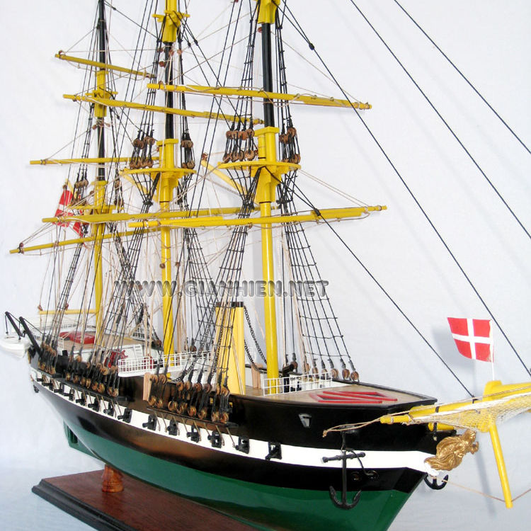Modelo FREGATTEN JYLLAND de madera, barco alto, barco alto de madera, barco artesanal