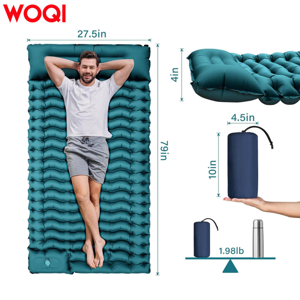 Colchón Inflable WOQI Rectangular Azul Pavo Real, Bomba de Aire, Colchoneta Portátil para Acampar y Viajar al Aire Libre