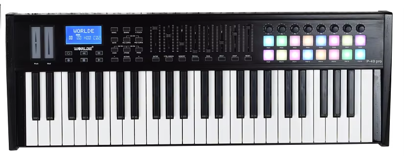 WORLDE USBWORLDE Controlador de Teclado MIDI, Instrumento Musical Portátil, Teclado MIDI Semi-Contrapeso de 49 Teclas, 2, 2, 1, 2, 2