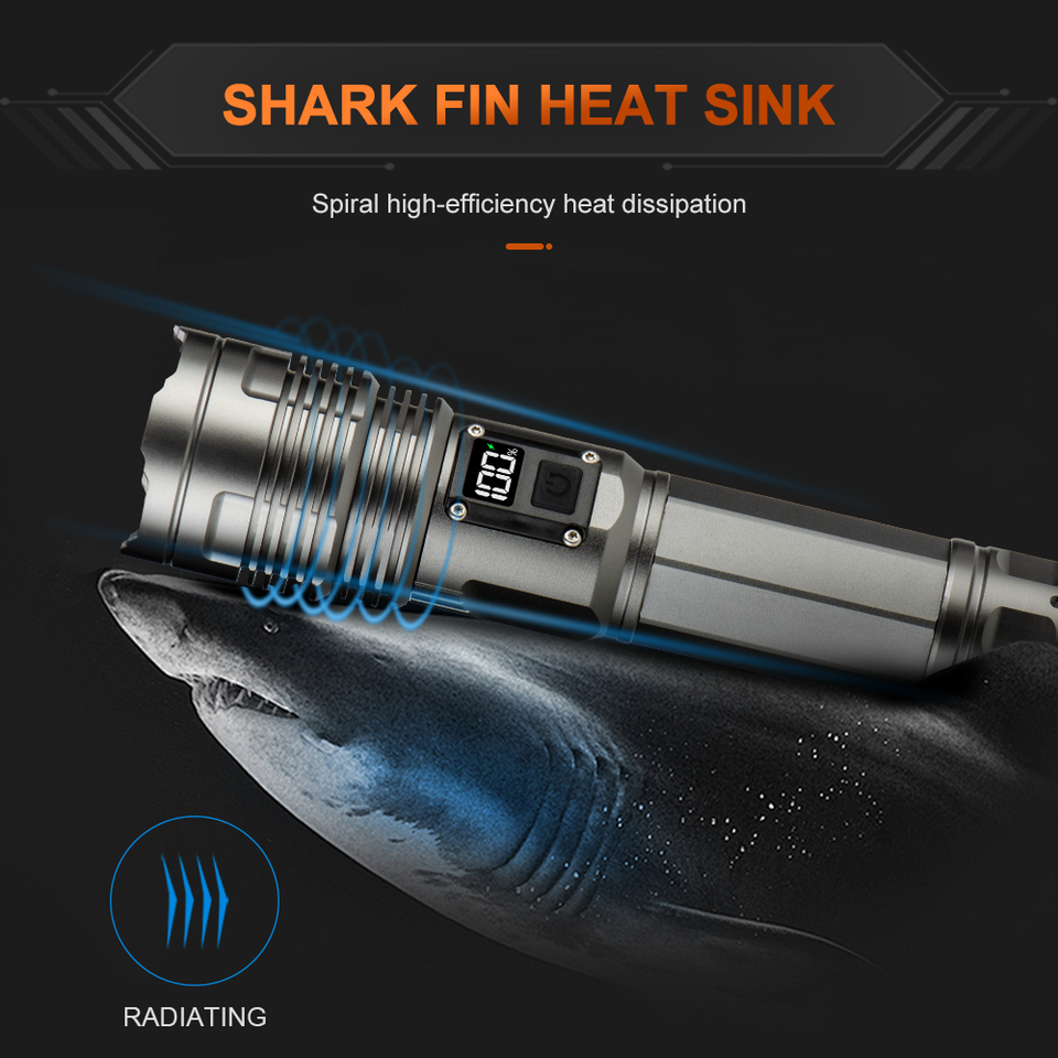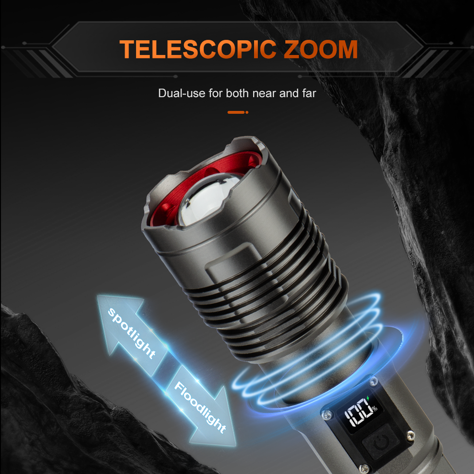 Linterna Táctica LED WOSEN con Pantalla Inteligente, Luz Potente, Resistente al Agua IP66, Recargable, Más de 1000 Lúmenes, Haz de Luz Ajustable