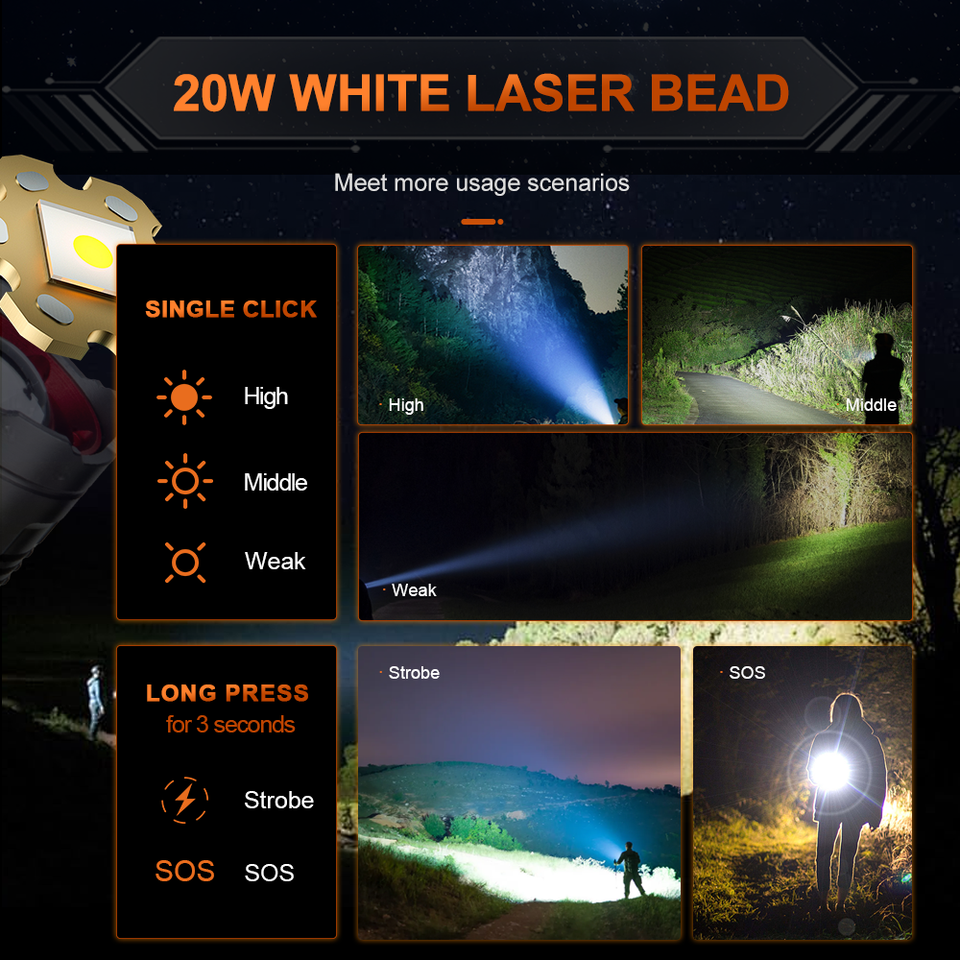 Característica:Recargable, Impermeable, enfoque ajustable