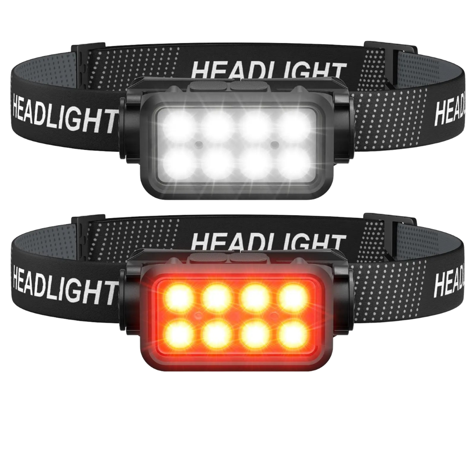 Linterna Frontal WOSEN Mini Portátil, Impermeable IP65, Alta Luminosidad, 8 LED, Sensor de Movimiento, Recargable por USB, Alcance de 200-299M