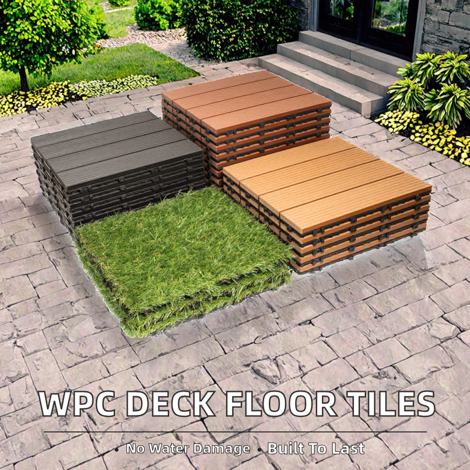 Baldosas de terraza cuadradas entrelazadas europeas con acabado cepillado WPC, baldosas de exterior impermeables con textura de madera, terraza compuesta
