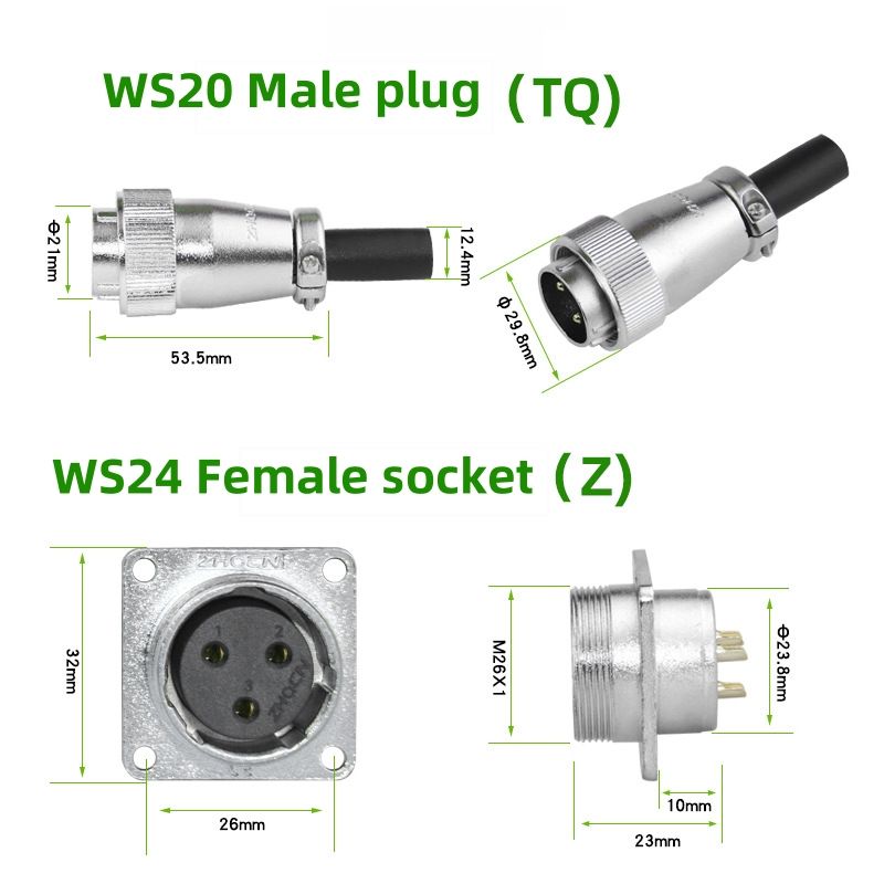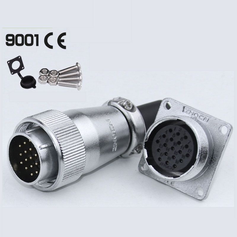 Conector de Aviación WS24, Enchufe y Tomacorriente de 2/3/4/9/10/12/19 Pines, Conector Eléctrico Cuadrado Macho y Hembra para Maquinaria Industrial