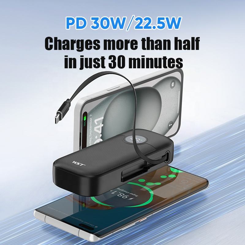 WST Maitinimo Bankas Led pantalla Digital teléfono móvil Mini carga rápida Cable de carga retráctil 10000mAh banco de energía