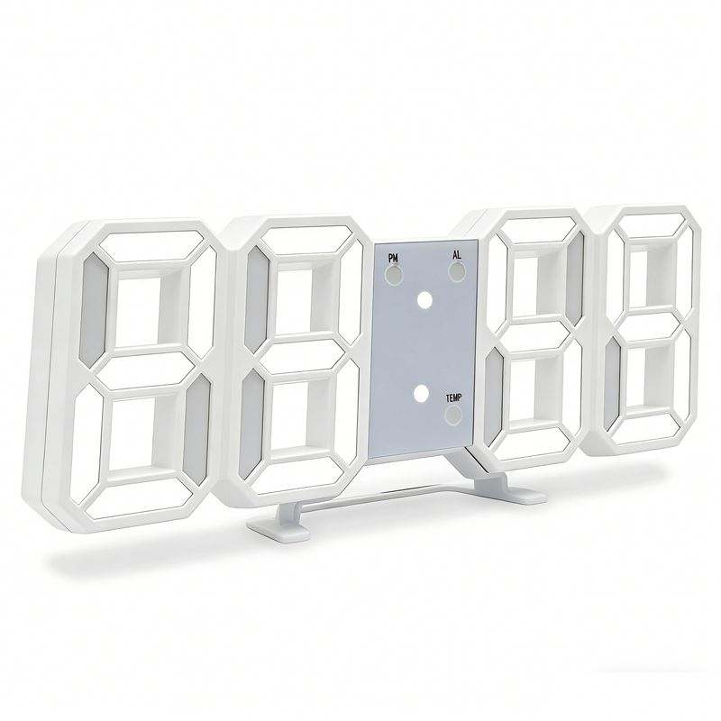 Reloj LED 3D WSY175, Reloj Digital de Pared y Escritorio con Alarma, Formatos de 12H y 24H, Brillo Ajustable, Luz Nocturna, Ahorro de Energía