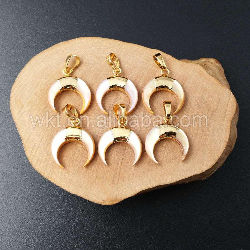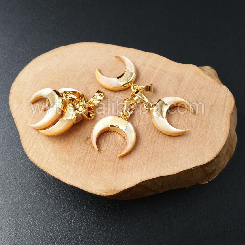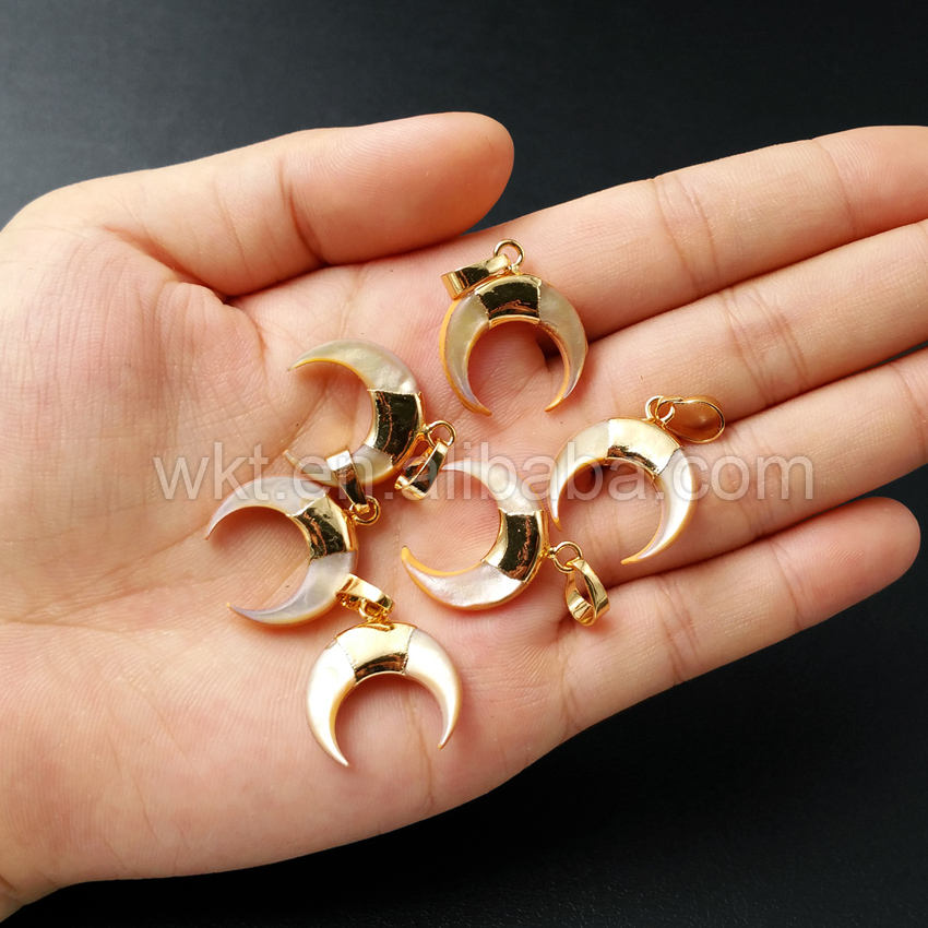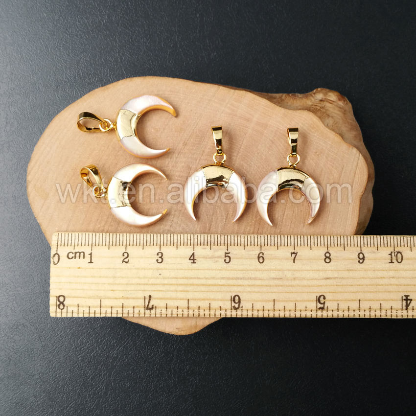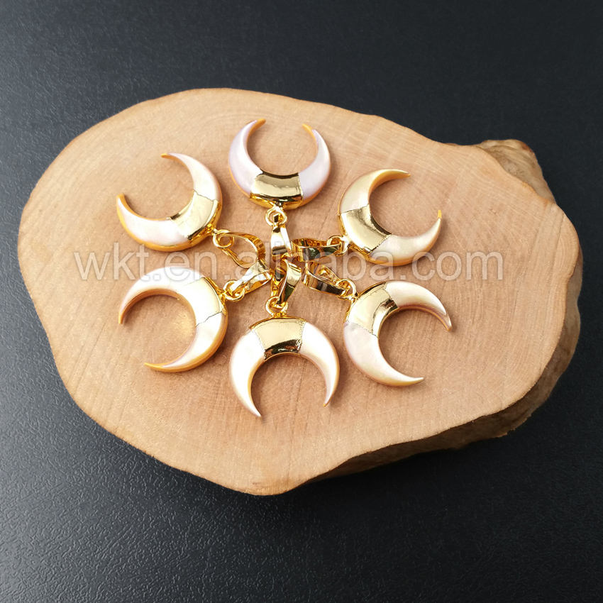 WT-P961 colgante exclusivo de concha amarilla Natural con colgante de concha de aro chapado en oro Real de 24k, colgante de concha creciente de Bohomia