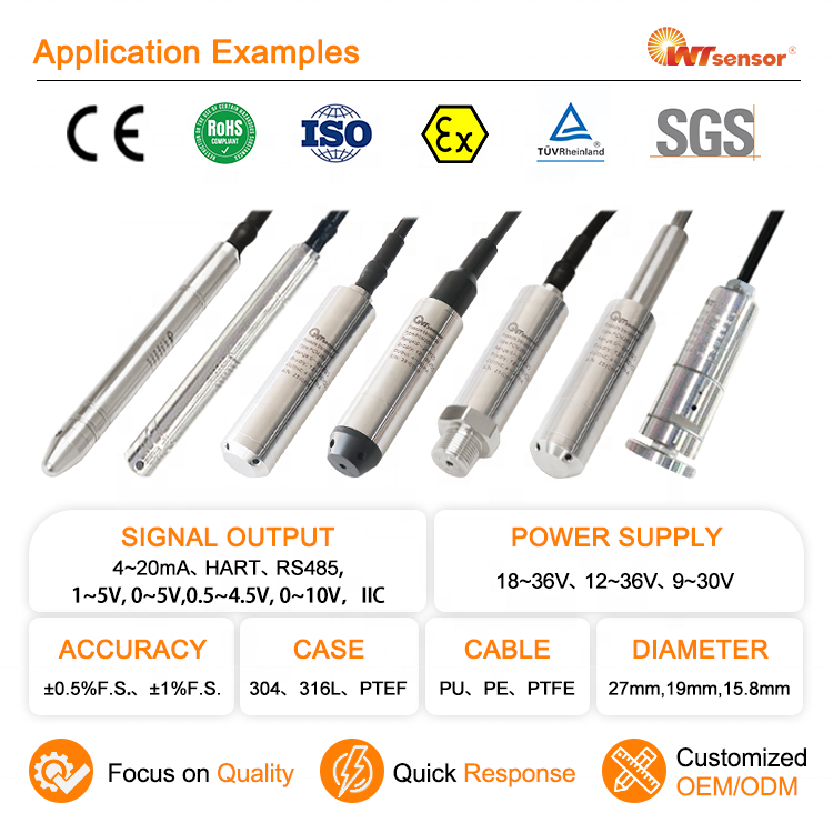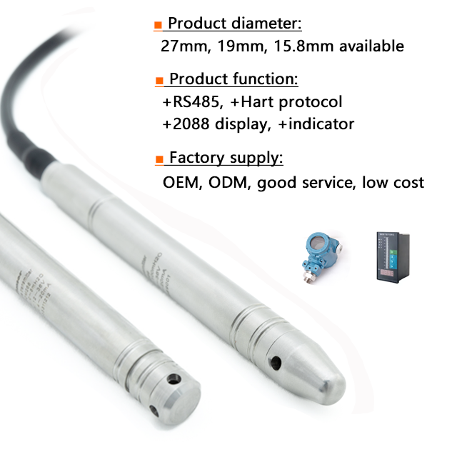 Sensor de Nivel de Pozo Profundo de Acero Inoxidable de Diámetro Menor de 15.8 mm y 19 mm WTsensor, Transmisor de Sensor de Nivel de Bomba Sumergible