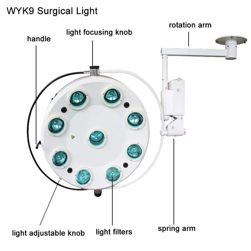 Nombre del producto:Lámpara de iluminación halógena WYK9 para odontología, veterinaria, médica y quirúrgica
