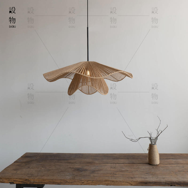 Lámpara colgante de ratán estilo Wabi Sabi, forma ovalada, bombilla Led E27 para sala de estar, dormitorio, sala de té, diseño Zen japonés