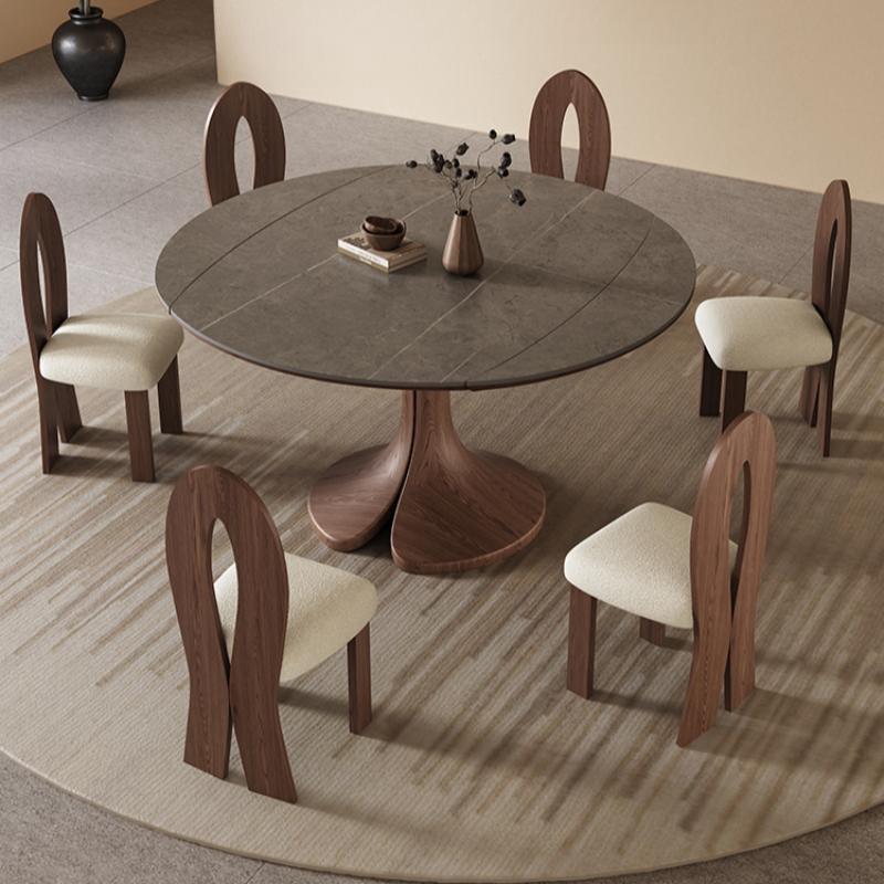 Mesa de comedor redonda extensible de madera maciza estilo Wabi Sabi con sillas para apartamentos pequeños y uso doméstico