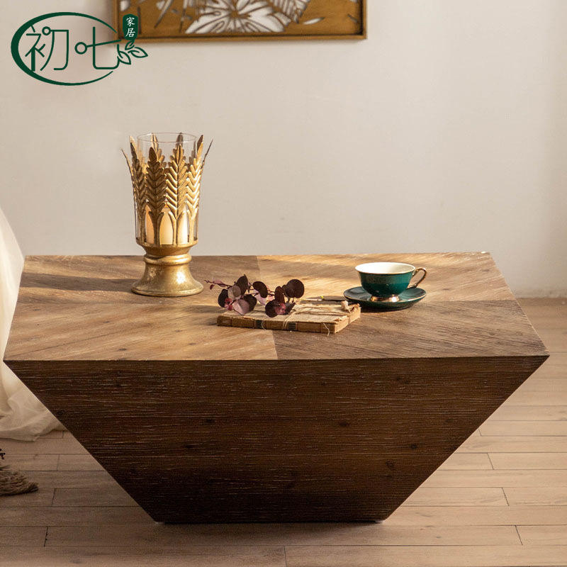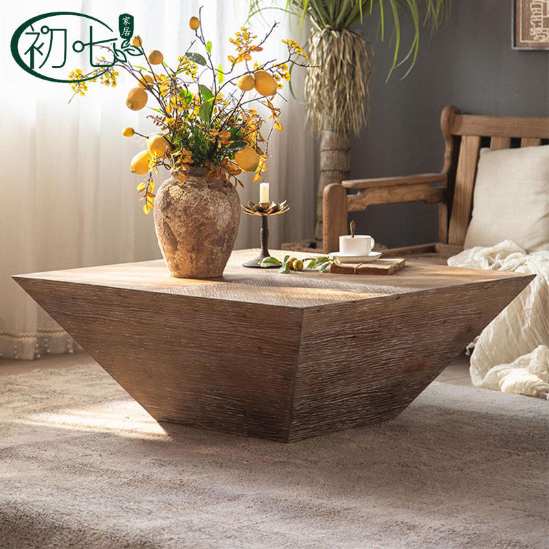 Mesa de centro cuadrada estilo Wabi Sabi de madera maciza, diseño rústico para sala de estar, mesa de té minimalista nórdica