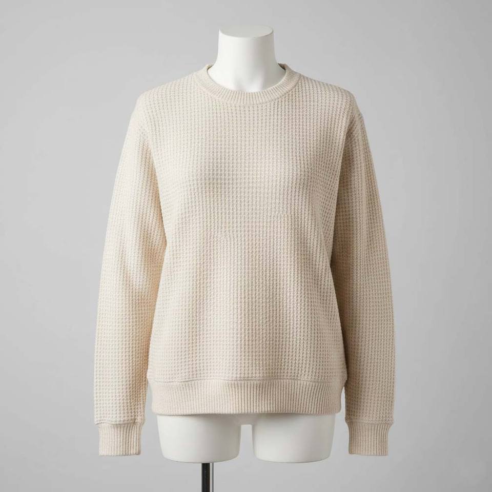 Suéter de punto gofrado con puños acanalados, corte holgado, unisex, térmico, 100% algodón, ropa de calle para invierno