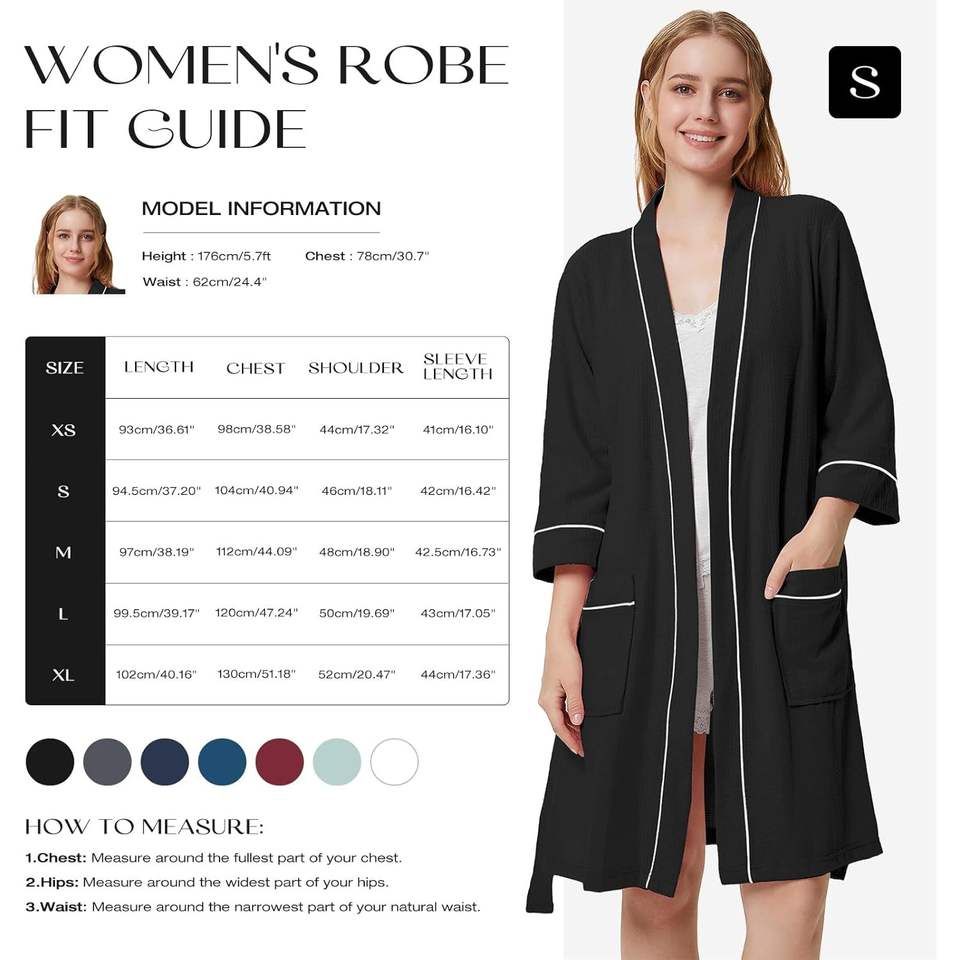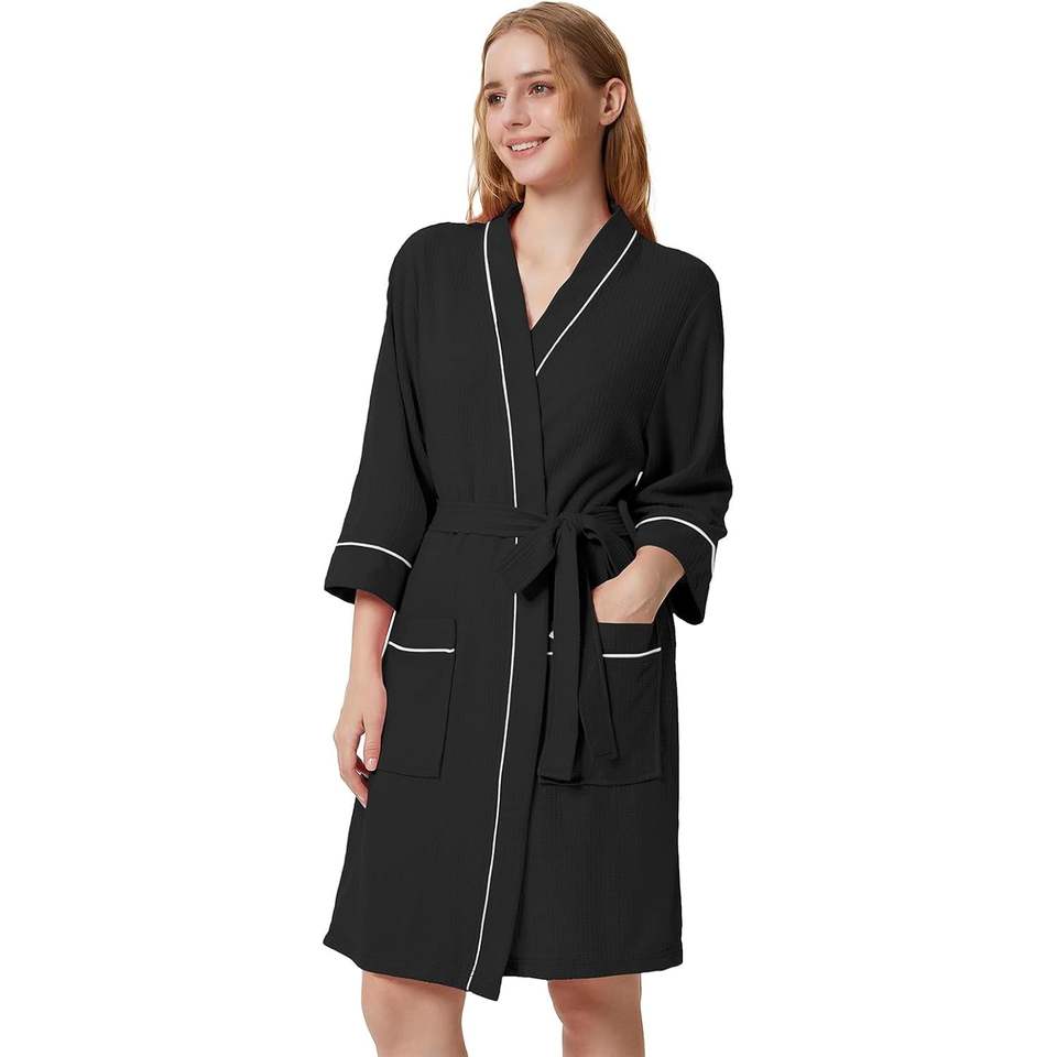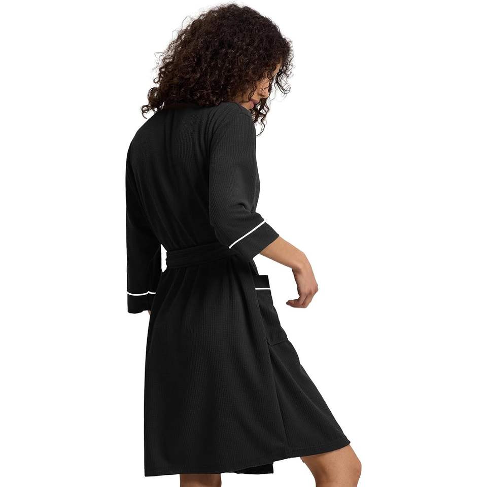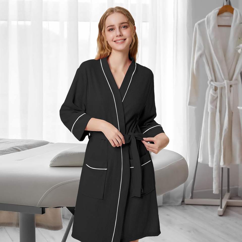 Bata de punto tipo gofre para mujer, kimono corto, bata de baño ligera con bolsillos, mangas 3/4, ropa de estar por casa para spa o ducha
