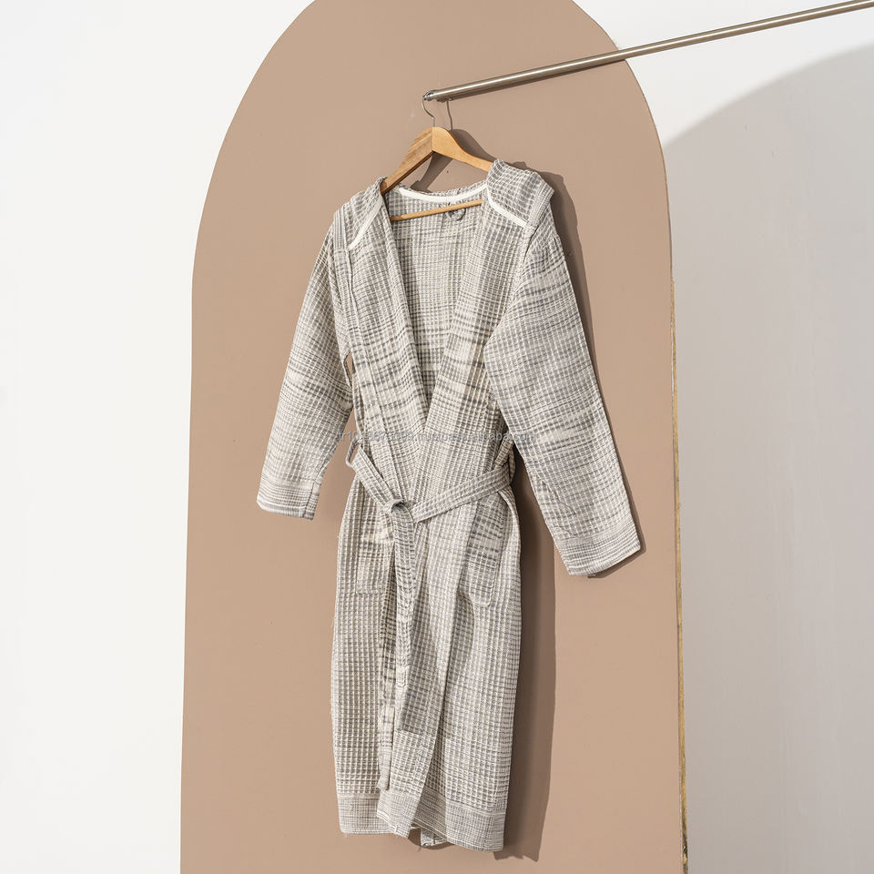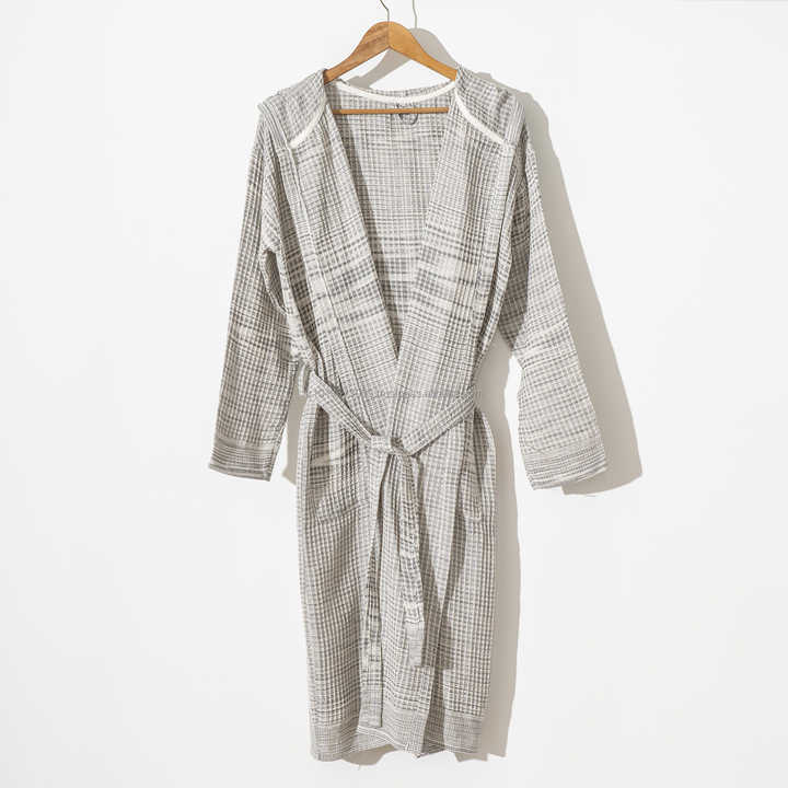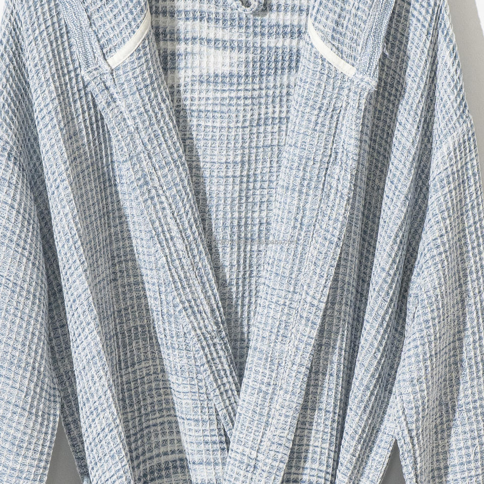 Waffle Unisex 100% Albornoz de algodón Hecho en Turquía Tela transpirable Peso ligero Secado rápido Verano Todo el año Ropa de dormir Ropa de salón