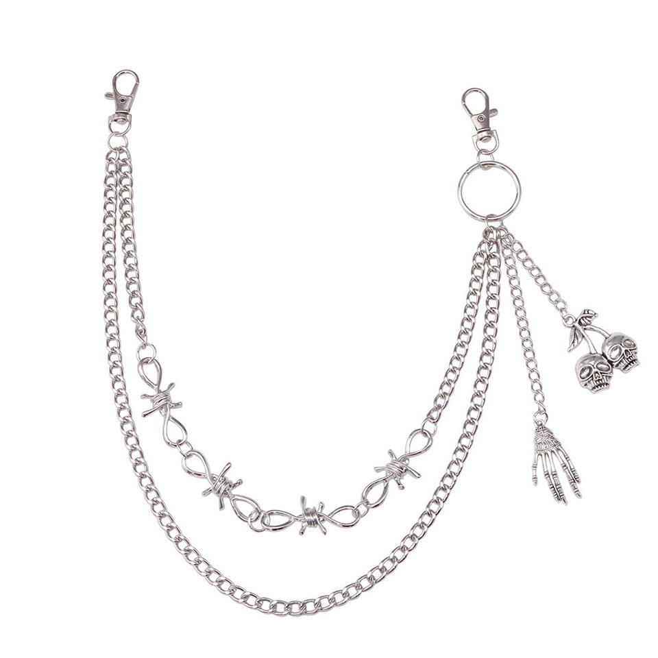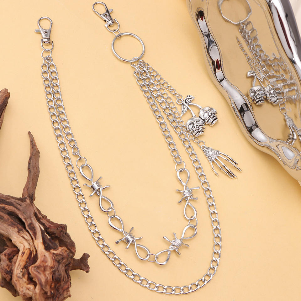 Cadena de cintura de doble capa de metal con colgante de calavera y mano fantasma, accesorio de moda hip hop unisex, aleación de zinc, color blanco K