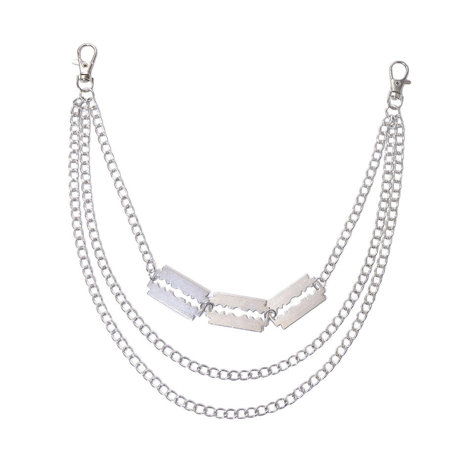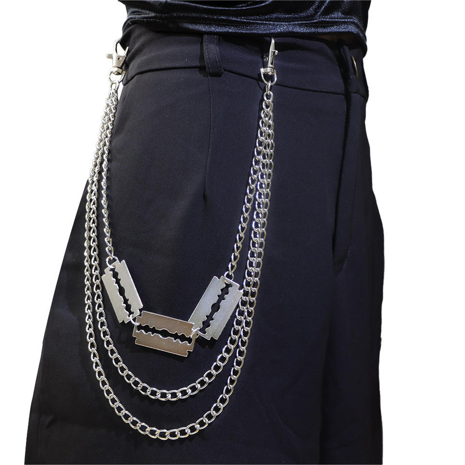 Cadena de cintura con colgante de hoja metálica de varias capas para jeans, accesorio de moda casual estilo hip hop, aleación de zinc, color blanco K
