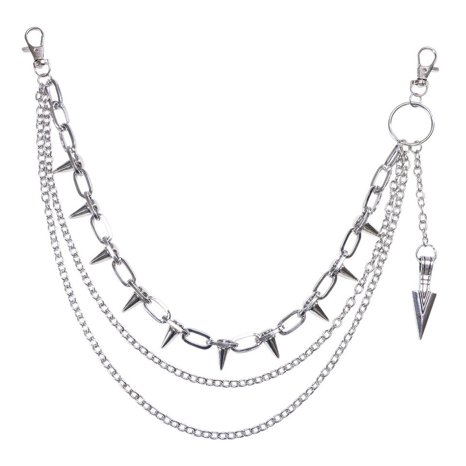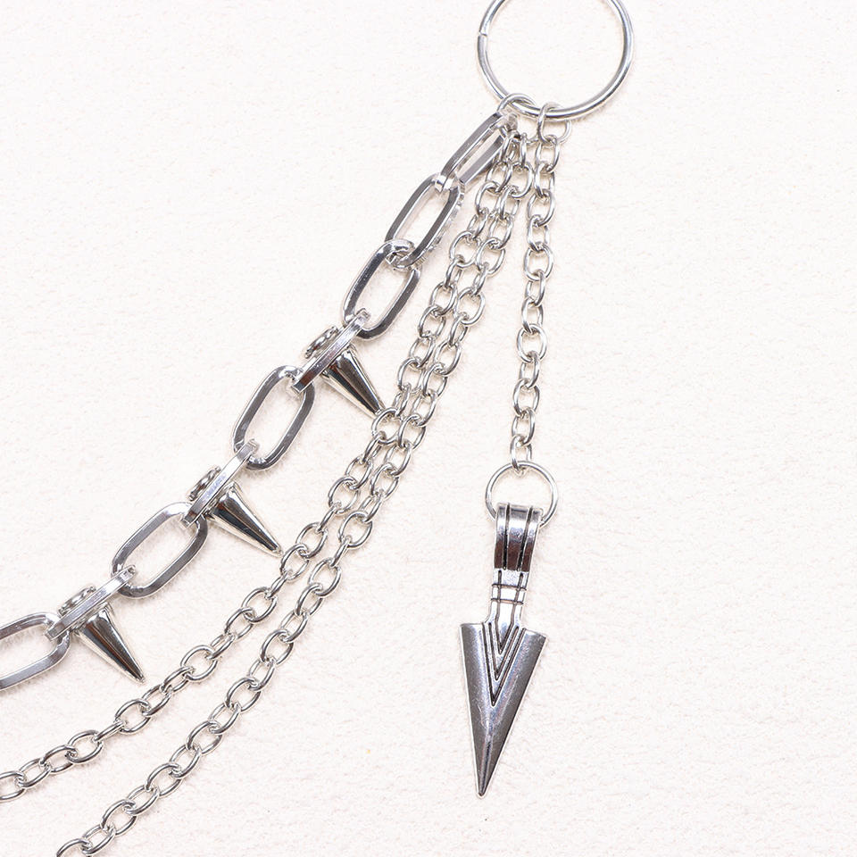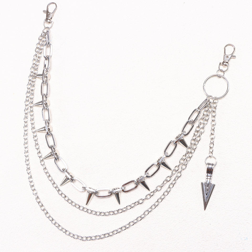 Colgante de flecha en forma de K blanca, cadena de pantalón remachada multicapa.