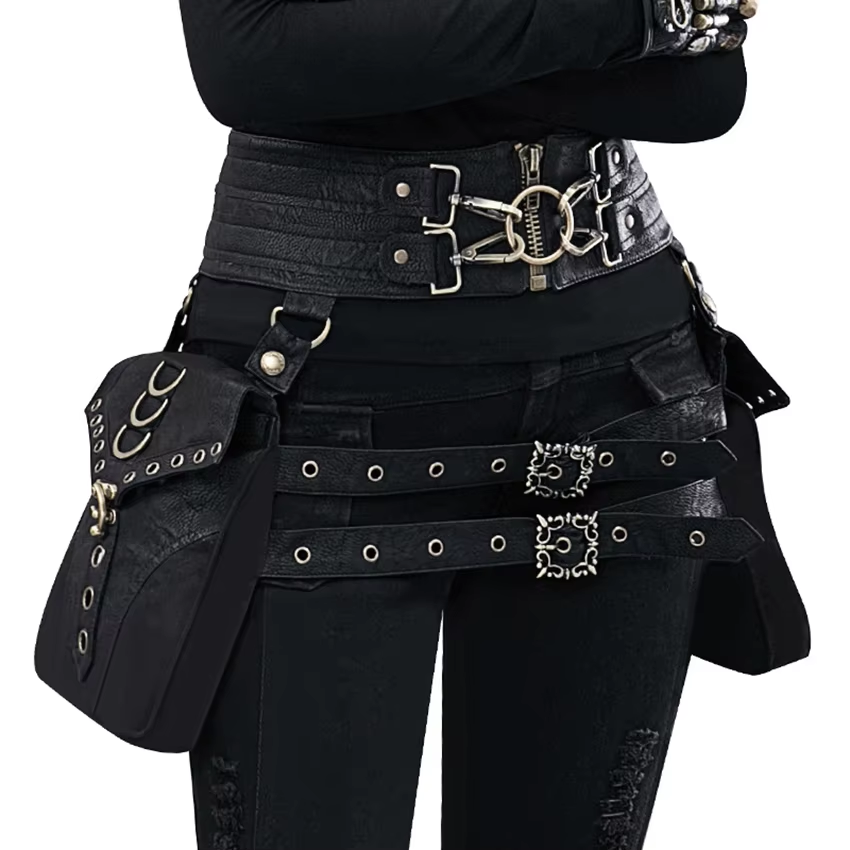 Riñonera para la cintura, bolso Vintage, bandolera para mujer, saco de cadera, cinturón, bolsillo, motocicleta, gótico, Steampunk, Retro, bolso de cuero PU