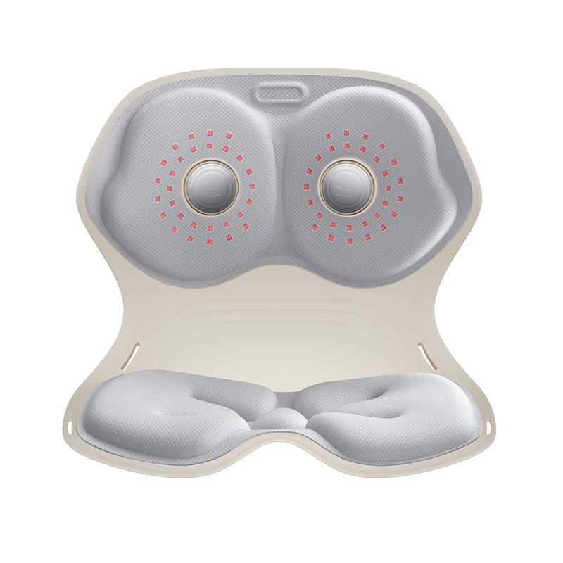Soporte Lumbar Ajustable, Corrector de Postura, Silla Ergonómica con Terapia de Luz Roja, Masaje por Vibración, Diseño Transpirable y Ecológico