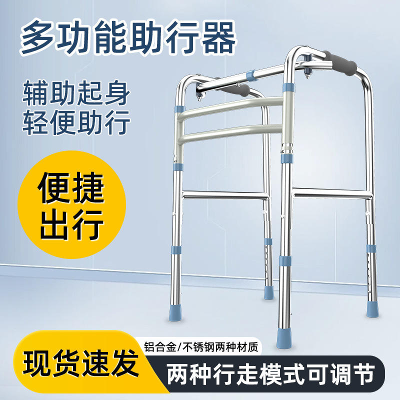 Andador con barras paralelas, diseño plegable de altura ajustable con una sola doblezura para soporte de piernas
