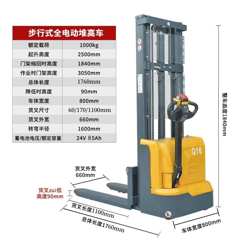Apilador semieléctrico de 2,5 m de altura de apilado completa, capacidad de carga de 1 a 2 toneladas