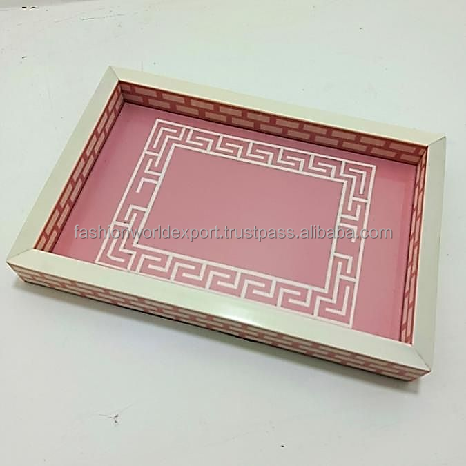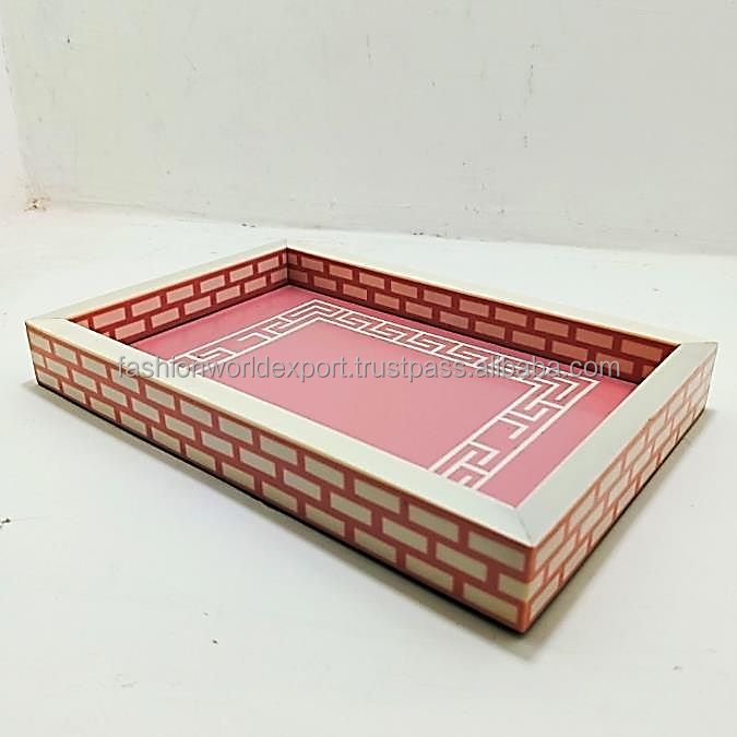Bandeja con incrustaciones de resina de ladrillo de pared, bandejas decorativas rosas hechas a mano para servir, multiusos para suministros para restaurantes y hoteles en La India