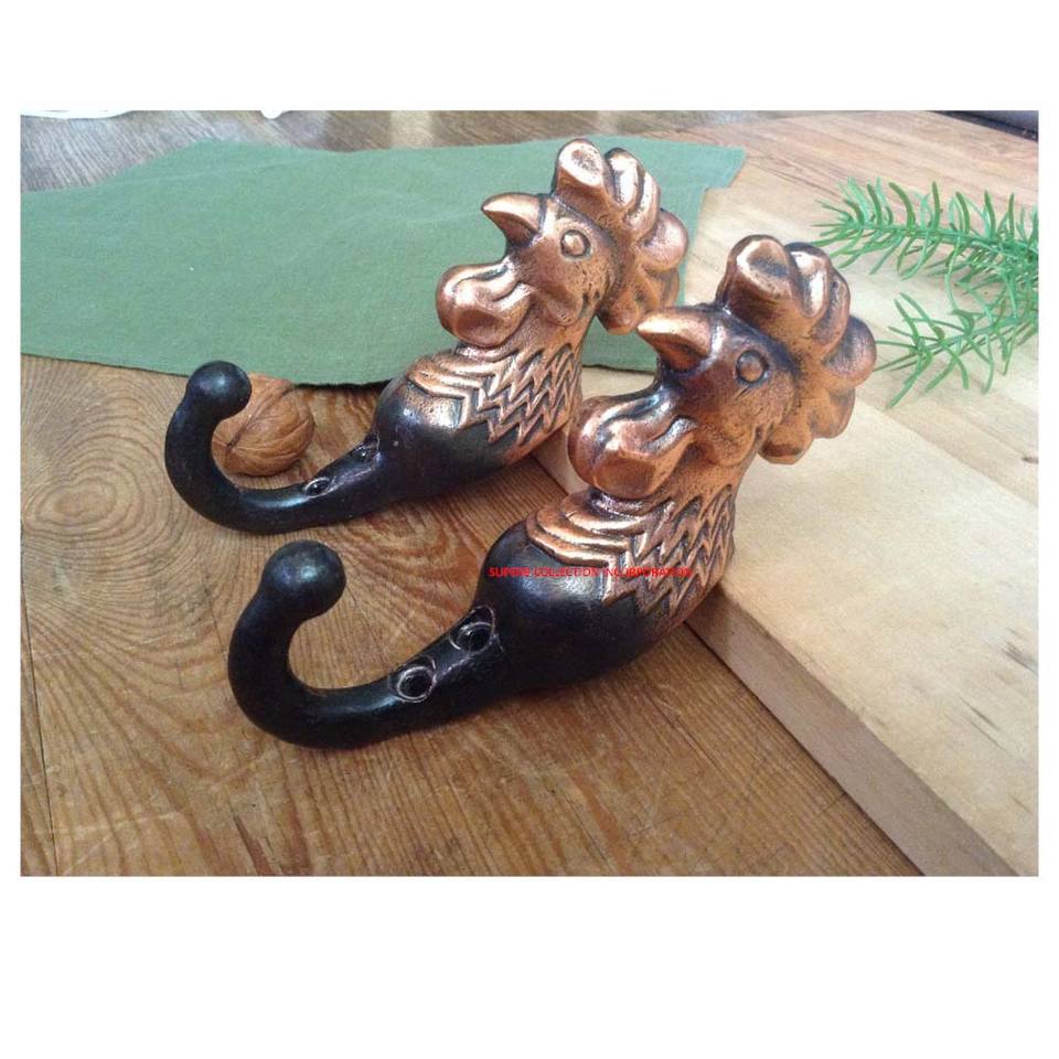 Gancho de pared para Gallo, colgador de Metal adhesivo, colgante de cobre, Color antiguo, diseño de cara de gallo