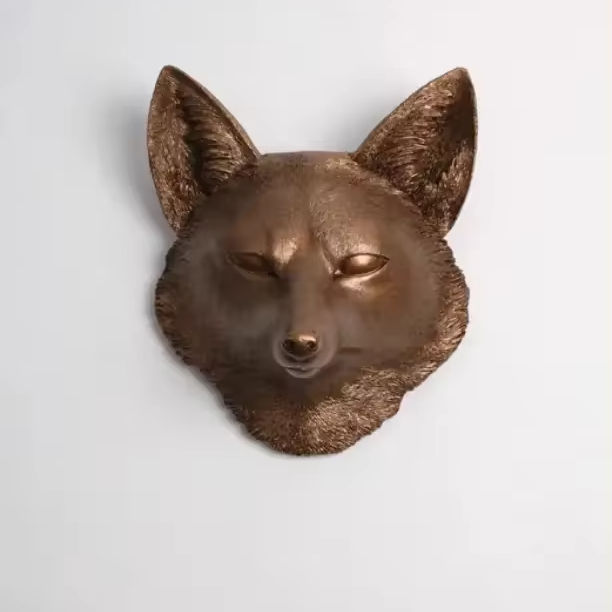 Decoración de pared Art Deco Metal Wolf Head Escultura Estatua para colgar en la pared de la sala de estar