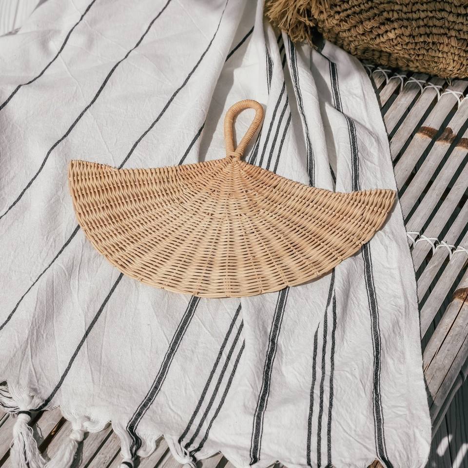 Ventilador de mano de mimbre para decoración de pared, nuevo diseño de abanico natural tejido, el precio más barato