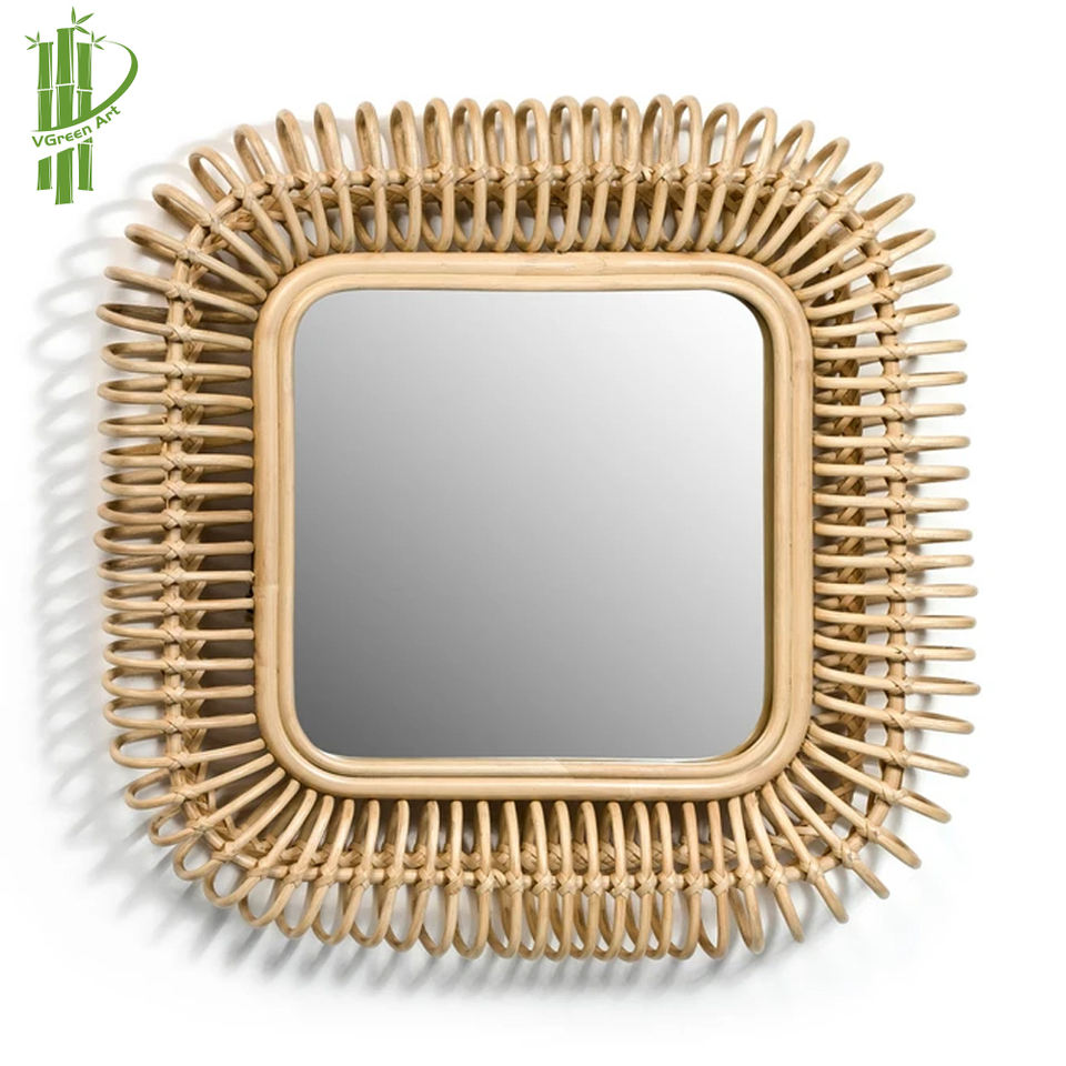 Espejo de pared de ratán para la decoración del hogar en forma de flor nuevo diseño hecho a mano espejos naturales hechos en Vietnam