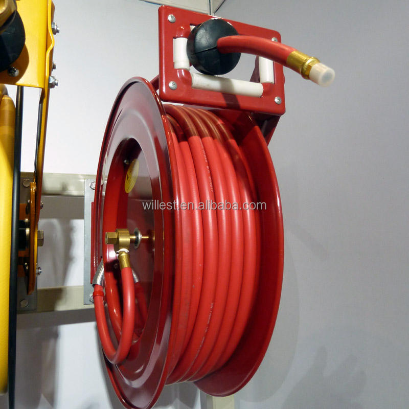 Soporte de Pared para Almacenamiento de Mangueras WILLEST, Enrollador de Manguera Metálico Retráctil de 3/8"x30m, HRO4005-R3/8"
