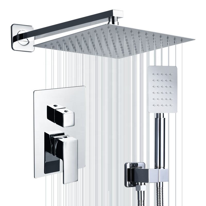 Juego de grifería para ducha de lluvia con montaje en pared, sistema de cascada para baño en cromo, juego oculto de grifería para ducha de baño