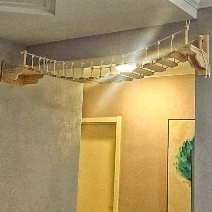 Estructura de Escalada para Gatos Montada en la Pared con Puente de Madera Sólida que se Puede Conectar al Nido de Gatos como un Ensamblaje Completo