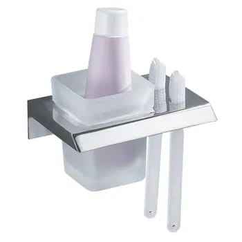Soporte de pared para cepillos de dientes y pasta dental de vidrio esmerilado con soporte cromado, organizador moderno para el cuidado dental