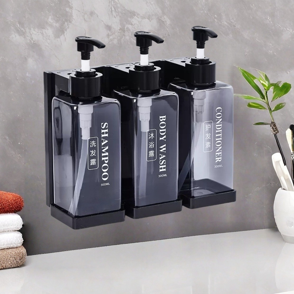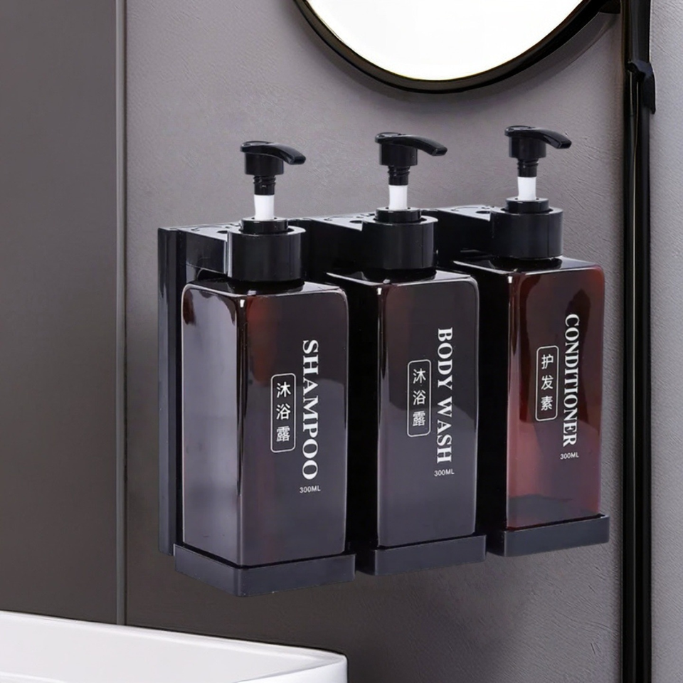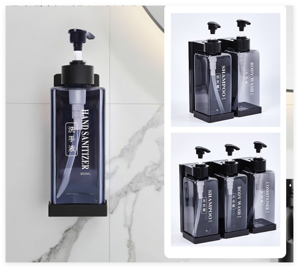 Dispensador de Jabón Cuadrado para Hotel, Montado en la Pared, con Cerradura para Llaves, Soporte para Botellas de Jabón Individuales, Dobles o Triples, con Botellas Incluidas