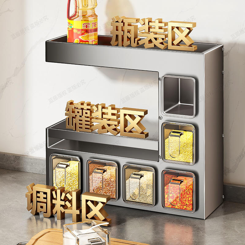 Estante de especias para cocina, montado en la pared, tamaño L, con tapa de plástico, contenedor de almacenamiento multicapa para condimentos y especias, uso doméstico