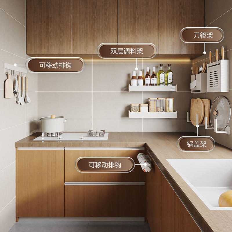 Estante de almacenamiento de cocina montado en la pared, estante colgante rectangular blanco para condimentos y artículos del hogar, no requiere perforación